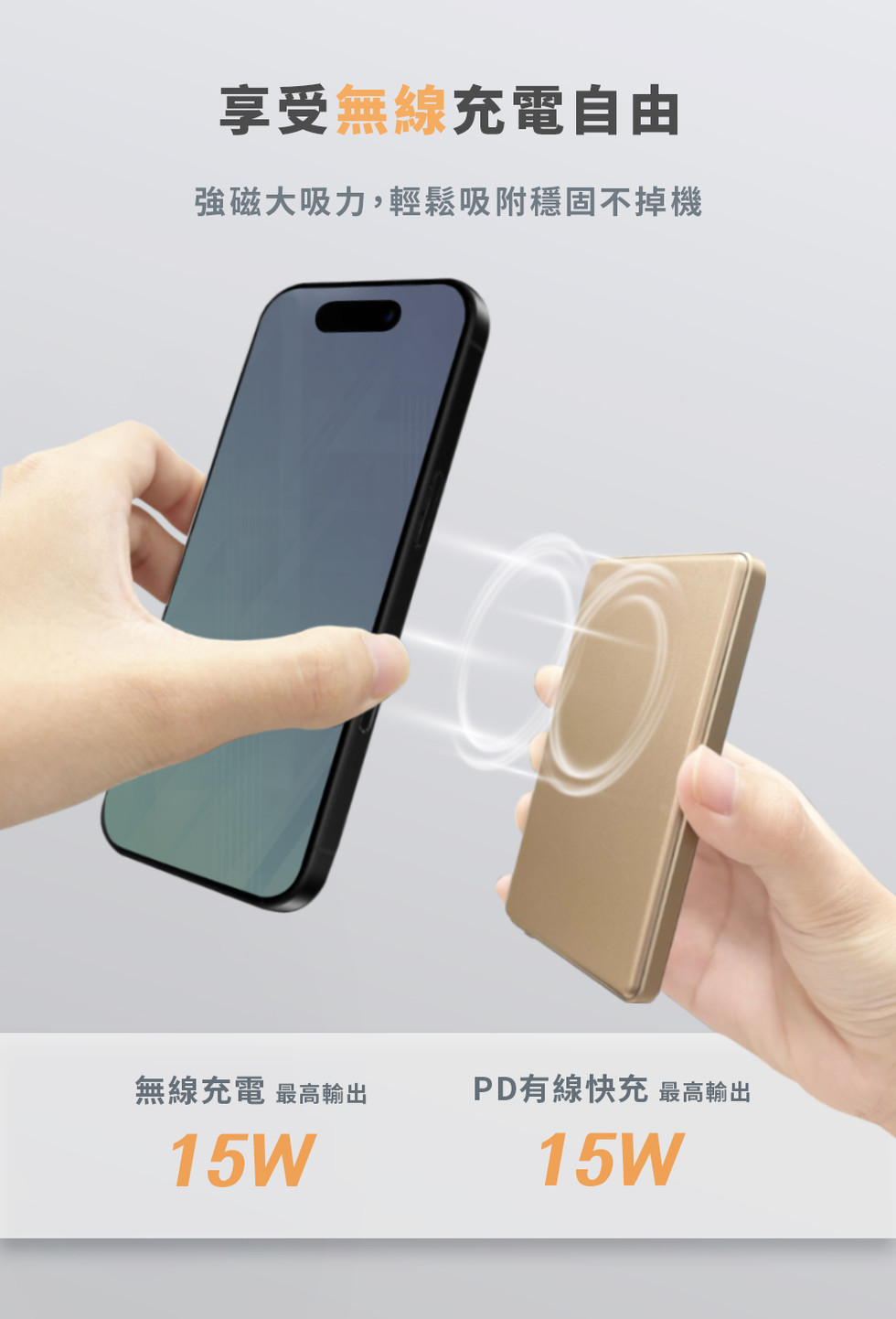 ●磁吸無線充電,完美吸附手機背面,充電不打滑、不掉線,隨用隨貼。