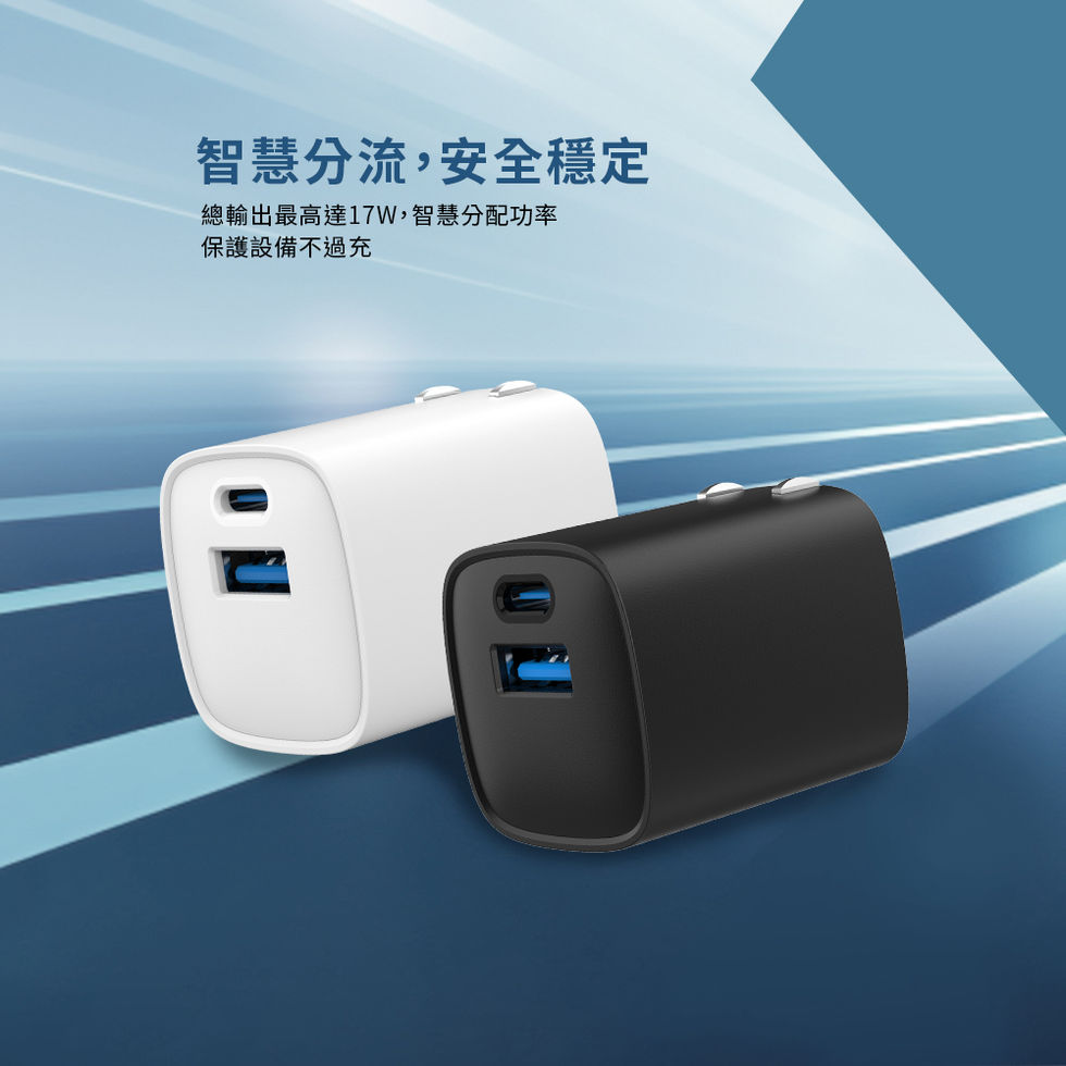 合計輸出:USB-A+USB-C:5V⎓1.7A+5V⎓1.7A (17W Max)